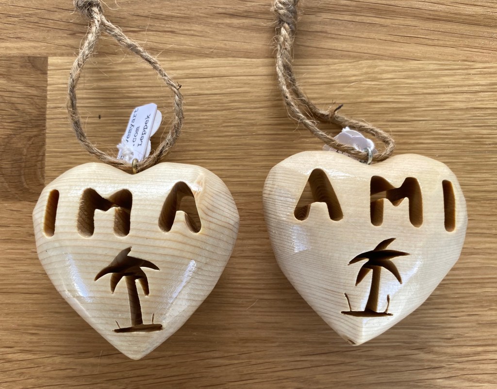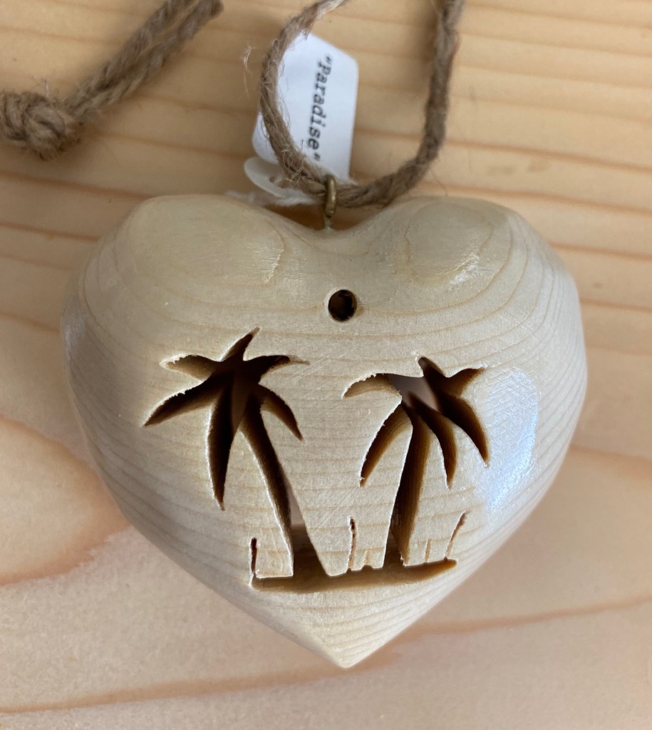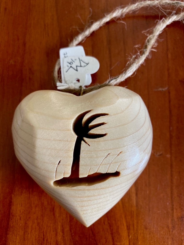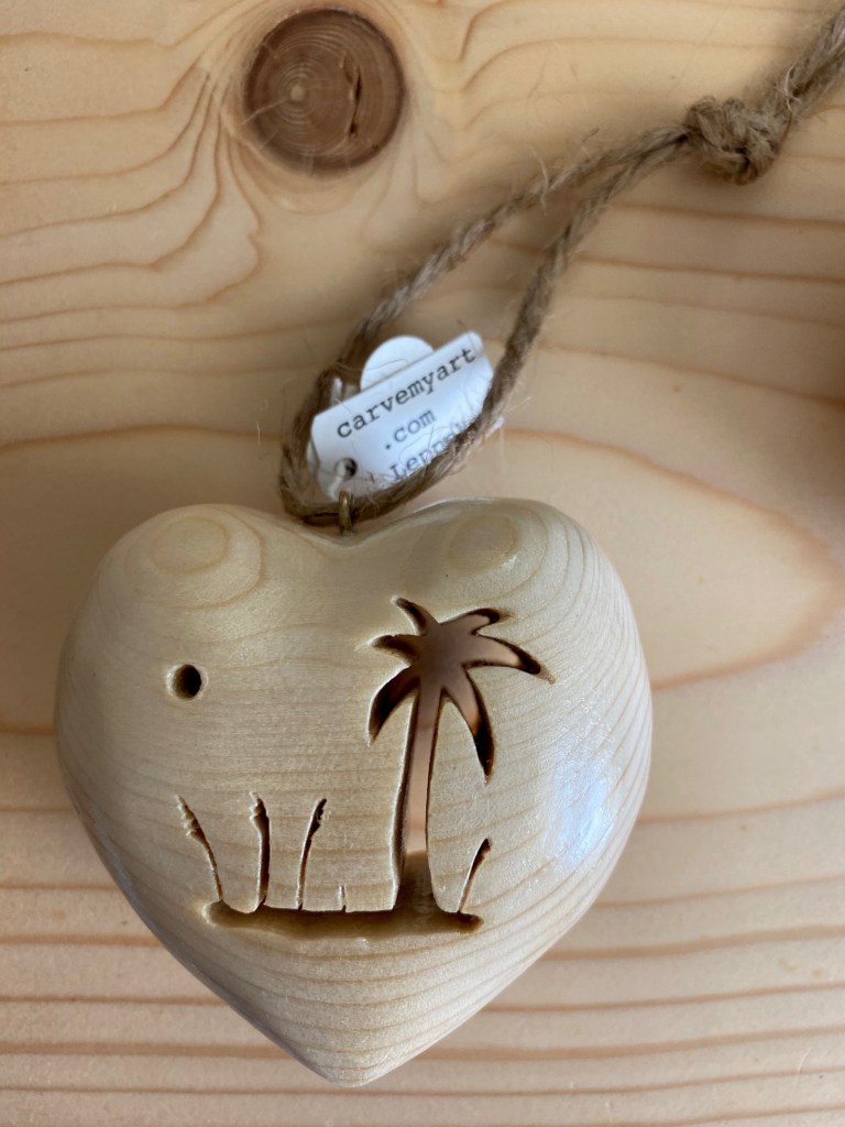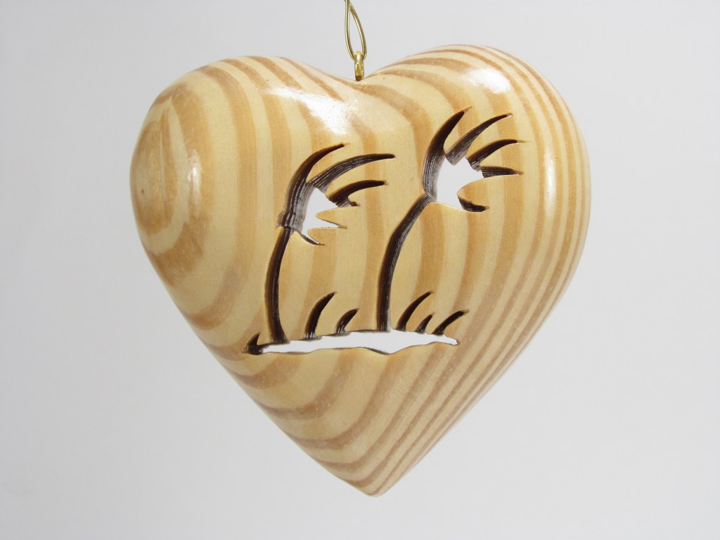 Pine wood is carved, sanded and polyurethaned showing the natural beauty of the wood. Actual size is 2 1/2 x 2 1/2 x 1 1/2 Price: $25:00 plus shipping & handling.